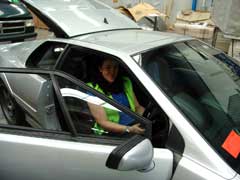 7 Dec 07. We finally managed to convince our freight agent for a peek of the car while still in the red tape zone, this is normally an area where you are forbidden to enter. Its amazing what you can do with loads of nice persuasion. Given a half hour slot and clad in bright yellow coats we were in there like rats up a drain pipe. It was awesome seeing it for the first time. Never seen a Sport 350 in the flesh till now was pure joy and really a feeling I will always remember.