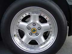 Billet polished alloy centre caps were made to replace broken black plastic ones, with Elise lotus badges made to fit wheels.