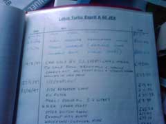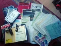 The service history on this Esprit is pretty good. It has a full service history, with stamps from Lotus, SJ and SWLC. It's now had four 36,000 mile C-Services in it's 50,000 miles. Although it is now 22 years-old. It has bills and receipts right from new, all the MoTs (17 plus the current one) and plenty of old Tax Discs. There is a log of mileage of it's journey's between 9th February 1997 to 16th August 2004, which includes over 300 entries (see below centre).It also has a book recording its Parts and Labour Information (see below right). This records the date, item and cost of items on one page, then date, Description of Work and Time on the next. This covers from 30th March 1996 to 21st February 1998. Somebody was really anal about keeping records on this Esprit. Which is great for us!