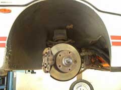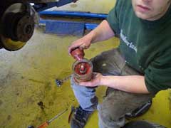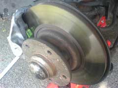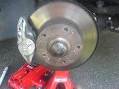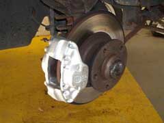 During it's C-Service with SWLC in May 2006 (see above), it had it's brake calipers removed and overhauled with the service kits. The calipers were then painted in silver heat resistant paint. Greenstuff brake pads were fitted with new brake fluid. The hoses were checked and those found to be on their last legs where replaced.