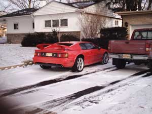 My impression of the Esprit after some time away from them is that it still pretty much fits me perfectly. I love the lines. I was used to the car in about 3 blocks. More to follow...14,000 on the clock. It had a belt service 4 years ago (due again...). Coolant weeps at almost every fitting. Flat battery. A loose wheel bearing, motor mount, (time for a tighten all the loose stuff party...) and a wet gearbox seam but overall a good car.