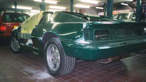 I could have had the job done at Steve Williams, Kevin his bodyshop man does some good work (see attached picture of Green Excel), he reckoned it would cost 4K. But Frost's is just round the corner from me and Phil the manager gave me good vibes. They had plenty of experience and there work was very good. The finish on my car is as good as the original Lotus work. The expense is in dismantling the car (all the bits are rusty), and fixing any faults in the gel cracks. Stress is the only problem with GRP bodies. I also got new badges, nuts, bolts, screws, and a final finish of TST to protect it. I also had a new wing mirror fitted (the old one had been twatted), replaced the grills on the front and rear valances. With hindsight I would recommend doing what Dermot did, and get some stainless ones made.