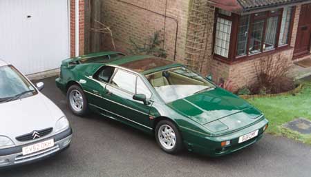 SE Year: 1989 Colour: British Racing Green Interior: Sand Leather Driving Style: I say "normal" everyone else says "fast", including West Sussex police, who have just donated three points for my clean license, damn and blast. Miles per year: 6,000 (limited mileage: Sureterm Direct) Owned Since: Nov 2001 Purchase from: Private Sale Serviced at: The first owner took it to Bell and Colville and Frosts, the second to Haydon's and Steve Williams, and me, well I just followed suit, Steve knows the car so he gets to work on it on a regular basis. It goes to him every 6 months, alternating between services, and MOT/odd jobs. Other Cars: Citroen Saxo VTS Previous Lotus': I have lots of books, posters, and models, and I nearly bought an Excel in 1996, but sense prevailed and I bought a new car instead. I lapsed in 2001 when I decided I had to get a Lotus, by then, only an Esprit would suffice. Why an Esprit: Why an Esprit: Are you nuts, look at the thing, it's the most beautiful car in the world. The only competition is the Aston DB7, the Ferrari 308, and possibly the De Tomaso Pantera. The first time I sat in it I thought it was perfect, perfect driving position, and very intimate. More practical than a Ferrari, more exclusive than Porsche, and more panache than a TVR. And best of all it exemplifies the best of British engineering, shame it also say's so much about British manufacturing!!