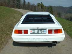 Turbo Year: 1985 Colour: White Interior: White Driving Style: Normal Miles per year: 2 4,000 Owned Since: August 2004 Purchase from: Dealer Serviced at: only by myself Other Cars: Audi S4 Previous Lotus': None Why an Esprit: What else can you buy if you want a mid-engined Sportscar and if you don't like the Ferraris and Porsches to much ? Upgrades: Everything is in original shape with the addition of a bov Problems: See below Info: See below The Story of this Car is special: from 1985 to 1990 it was running in England. Then it was imported to Switzerland. They had to do some changes for getting the registration here. They also had to put in a Cat/Converter ! (now it is removed again, of course ). The Car was basically just storaged, it has only 25k Miles on it.