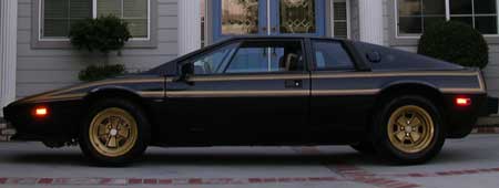 S2 JPS No.100 (Federal/California car) Year: 1979 Colour: Black with Gold Trim Interior: Black JPS Interior Driving Style: Very Fast Miles per year: 2,000 - 4,000 Owned Since: 13th July 2005 Purchase from: Private owner/ Golden Gate Lotus Club Member Serviced at: Veloce Motor Speed and Home Other Cars: Vector W8 (#012), Ferrari 348TB Speciale, 70 Corvette Motion Maco Shark, Corvette C4, Mercedes 300E. Previous Lotus': 95 Esprit S4S, Lotus Westfield 11, 77 Esprit S1. Why an Esprit: Esprit is alway my favorite car Upgrades: 100% Original. Problems: No problems yet!!!!! :) Info: Mileages 53,891. I'm looking for another Esprit S2.2(federal)