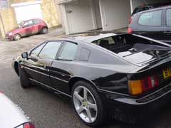 Esprit NA Year: 1988 Colour: Black Interior: Black Driving Style: Should be on the track Miles per year: 8,000 - 10,000 Owned Since: September 2001 Purchase from: Private Serviced at: Lyte & Wakefield / Esprit Engineering Other Cars: SLK 230 Kompressor, BMW X5 V8-4.4i Sport Previous Lotus': None Why an Esprit: Silly question, you mean they make other cars! Upgrades: Aftermarket Alloys - Kahn RS-R - 265/35/18 rear and 235/35/17 on the front. K&N Air Filter. EBC Green Stuff pads. Kenwood Mask head unit and 500W amp. Tweeters in door ashtrays and 6x9 behind seats. Snooper 6rs-neo GPS Radar/Laser detector. Improved flow exhaust system Problems: Biggest problem - Lacquer separated resulting in entire respray, Gearbox translator bearings and rose/crown joints all replaced, Replaced all 4 headlamps, OSR brake calliper replaced, Downpipe welded due to split at join, Both indicator repeaters replaced, Otter switch replaced, Throttle jack repaired, Steering wheel replaced (with original 2-spoke again, gotta love it!), Stainless steel braided clutch hose, Wheel centre trims (bloody kids!), Esprit logo's on quarterlights replaced, Roof lining and head lining (planned) Info: December 1987 Steven's X180, registered in Jan 1988. Car No: 0064 off production line.
