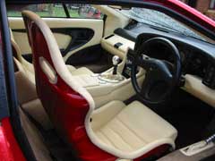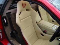 Plenty of Aluminum in the cockpit! You can see the Blitz Gauge next to the Red Start Button. New Momo Steering wheel, which is from the V8. Colour coded Sport 300 seats, trimmed in matching leather. See more on the seats here.