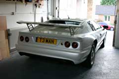 I've also fitted a Sport 350 gear knob made by my engineer friend, a Sport 350 steering wheel, Harnesses, (properly fitted, using stainless box section behind the firewall to mount the mounting points to), S4 wheels and tyres, S4 wing mirrors (Mine had the Ford ones originally!), and a digital speedo. My more recent mods have been to fit a V8 tailgate, which will shortly be getting a Sport 350 spoiler fitted to it, that I made myself from a mould I took from an original. It looks better than it sounds, believe me! In fact, it is a better quality finish than the original lotus item I borrowed to take the mould off!