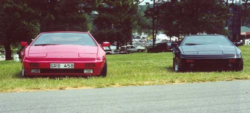 I take it to Road Atlanta a couple times a year for some hot laps with my local Lotus club. the previous owner of my car added a rear wing and had the side skirts painted calypso red to match the body color... I like that look.. It gives the 88 a little pinch of SE.... The only thing I have done with this car is put on new tail gate support struts, new horns, and rebuilt the left front brake caliper... The car has been repainted and was done very well. I have added Lotus center caps to the stock 88 wheels, and have put on Yokohama AVS tires... I do now have a eurpoean front plate on my car, gives it that British look.....
