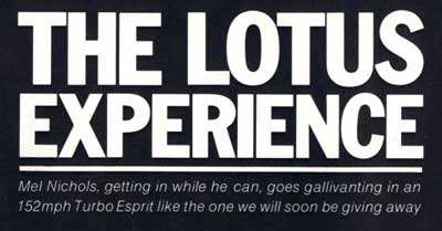Experience said cool it, settle in slowly. Establish an equilibrium. Play yourself into the car, and the car into the road. Don't make the fatal mistake of going too fast too soon. Familiarity mercifully shortened the normally lenghty process of adapting to the Esprit's high steering wheel and scuttle, its intimidating 6ft 1in width and its low driving position. Given that, the car felt instantly and beautifully available. I wasn't so fussed about the gearshift mounted high on the central tunnel as Roger had been; the point lay more in the short-throw delicacy of the mechanism itself, although changes into second had to be slower because of slightly dodgy synchromesh in our much-abused demonstrator than was normal. If the narrowness of the footwell was annoying, I was pleased enough again to accept the trade-off of precise, short-action and well-balanced pedals, set deliberately so that their efforts are match as closely as possible to each other and to the gearshift and steering.