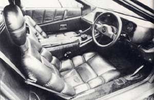 Above: Turbo cockpit is a cocoon of comfort where accupants are held snugly in indivdual tubs. Wheel and instrument pod are too high.Above right: With 57.5% of its weight and 235/60VR15 tyres on very wide 8in rims at the rear, Turbo Esprit has unsurpassed level of roadholding and handling.
