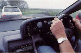 Heading west from Diss, onto the four lane A1, I stuck with the Lotus, exploring its user friendliness in multi-lane drudgery. Forget handling, forget performance, rearward vision is what counts here, and ride, creature comfort, ambient noise, quality of stereo sound. It looks a pretty blinkered piece of kit, the Esprit, but I found outward vision only marginally more limiting for lane hopping than the average saloon's. Aided by large and essential and excellent '89 spec mirrors, this car offered no dangerous blind spots, care being needed only on the nearside rear when overtaking.