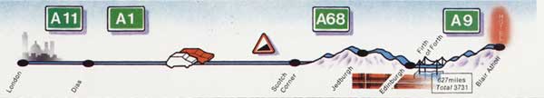 Out of Blair Atholl and back onto the excellent A9 without having even glimpsed the Duke of Atholl's castle, or any of his private army that we could tell. Sitting low in the Lotus, brushing aside the thick mist, made me think imaginatively of the red deer herds in the Highlands. Would the Monarch of the Glen come through the windscreen or go clean over the top if I took his feet out from under him?