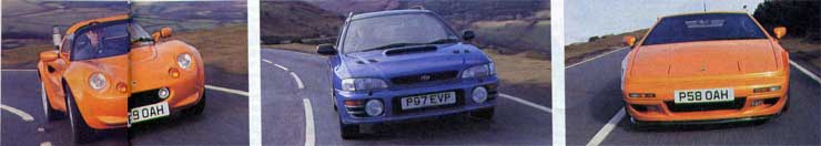 And when the heavens open, the Subaru's sure-footed nature means the Elise and Esprit haven't a hope of keeping up across country. The four-wheel drive also makes it very stable under braking, and an ideal car for towing.