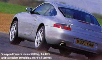 But this car remains a thoroughbred Porsche. The engine sings with the 911's familiar deep whirr even if, in this model, the volume appears to have been turned down. The six-speed gearbox is so precise that it makes even the much improved Lotus linkage feel sloppy. The brakes, too, are more impressive than those in the Esprit and as for pedal arrangement, the Porsche wins again.