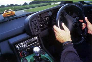 On the track, it feels at ease and under control and does the lap times to prove it. Even on a damp surface, there's enough grip not to lead you into sudden frantic bouts of steering correction. Provided you keep the power flowing on smoothly, the stance is just on the understeering, and therefore directionally stable, side of neutral. Yet the Esprit always feels precise in an almost mechanical, proportional way, and the sharp, accurate steering always tells you what's going on. It's power assisted, but you'd never know once you're beyond parking pace.