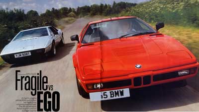 Which, for example, do you suppose is the more comfortable? I had imagined the BMW would win hands-down on that score and I'll be most of us would expect that. Well, it just isn't so. The unpretentious interior of the M1, famously designed to match the company's saloon cars of the day, shares its instruments and switchgear with contemporary 3 series and 7 series models. It has a certain stark appeal which many find attractive, but I had forgotten about he headroom. You really need to be about 5ft 8in tall to be comfortable in the BMW and the lack of support, worsened seriously by the inadequate headroom, can spoil the driving pleasure in an otherwise magnificent machine.