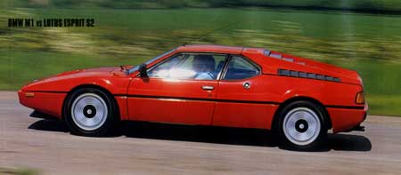 As for looks, both are head-turners. But the M1 seems to attract slightly more attention, probably because it is so rare. It's a masterpiece of styling, that glassfibre body, being muscular yet dignified from every angle and still, with its kidney grille at the front and recognizable rear lights, very obviously a BMW. The Lotus, with its sharply-chiseled look, is another widely acclaimed classic Giugiaro design. They're different but both score very high points for style.