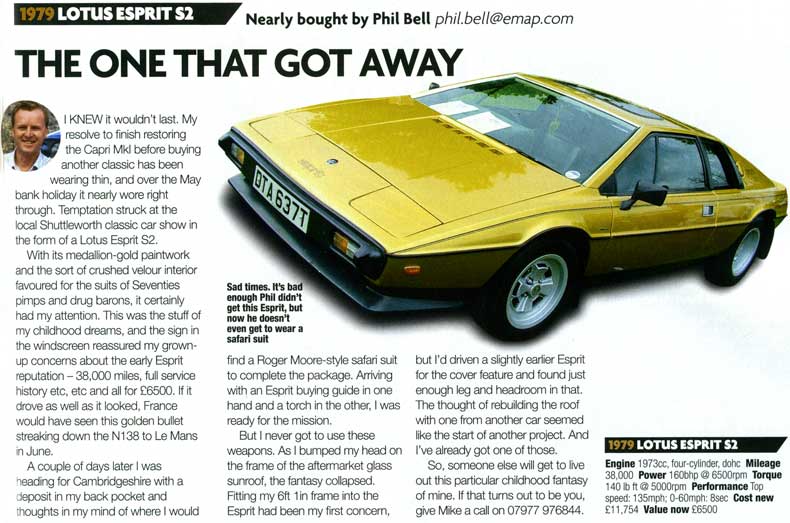 home email news esprit models road tests buying an esprit running an esprit esprit owners maintenance pictures for sale history Lotus models links