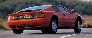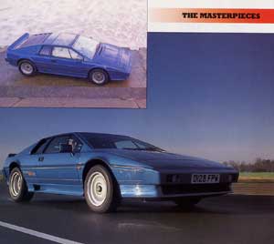 Above: One of the shortest-lived Esprit variants was the Turbo HC, the HC standing for the higher compression which, along with more boost and bigger Dellorto carburettors, helped give the car more power 215bhp. It was superseded by the current model later that year. By 1987 a stronger, stiffer chassis and revised rear suspension greatly improved the Esprits handling, and meant that the driver could exploit the power of the 2.2 litre turbo to the full.