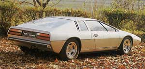 Giugiaros prototype Esprit appeared first at the 1972 Turin Show, based on a stretched Lotus Europa chassis. The back of the car lifted up to reveal the engine.