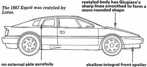 Above right: In 1987 Giugiaro original sharp lines were smoothed away by Lotus designer Peter Stevens to form the current model, which is even more aerodynamically efficient.