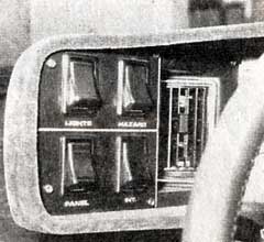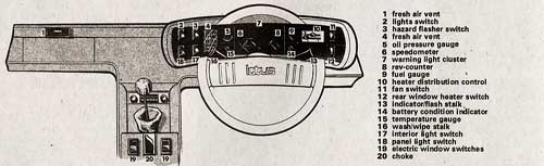 Most of the minor controls are set into the neat instrument pod which must greatly simplify and reduce the cost of LHD conversion, and they are all within easy reach of most drivers though some will find the lefthand switches too far away. The lefthand stalk operates the two-speed wiper and the windscreen washer, and the indicators, flasher, main beam and horn are operated by the other. The coke lever and the electric window lifters are handily placed on the central console, behind the gear lever.