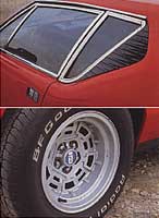 Wily De Tomaso gave the Pantera a unitary steel chassis to make it more appealing for big-scale manufacturers. The suspension was by double wishbones, coil springs and anti-roll bars front and rear, and plonked right in the middle of the whole structure was a 351cu in (5.7-litre) Ford 'Cleveland' V8 engine, rate initially at 300bhp. It was mated to an impressive-looking ZF transaxle whose huge length and genera size, together with the bulk of the 351, conspired to give the car a hefty rearward weight bias and to intrude rather alarmingly into the space allowed for occupants. Still, the early Pantera, as seen here, had a clan dart-like profile and made many other supercars of the time seem bulky and fussy.
