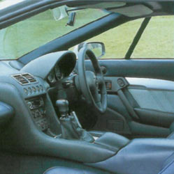 Hang on a minute, though. Stepping out of the Noble into the Lotus, I seem to be swapping one set of ergonomic woes for another. Entering the Esprits drivers seat is akin to entering your house via the letterbox, so tight is the aperture between door panel, seat squab and steering wheel. Once strapped in, your feet get tangled up in the footwell and the sill-mounted handbrake lever is all bout out of reach. The drivers seat is more comfortable, thanks mainly to a more generously stuffed cushion. Peripheral visibility is on a par with the Noble, by which I mean decidedly restricted, but the view ahead is unique, thanks to the enormous, flat pane of windscreen glass.