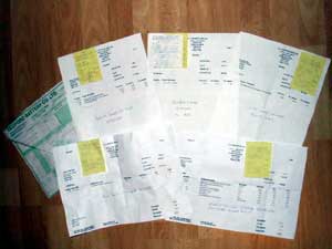 Above right you can see a list of parts and receipt. These are items I have purchased for the Esprit. On each part receipt, I have written what was done and the date and mileage at the time, It was done. This should be as valuable as your dealer receipts, because this shows you've taken a interest in your Esprit, have done some work yourself and documented it. This also helps create a positive feel from any prospective buyer. You can also look back if you have any further problems and see what was changed when. This also goes for the dealer history. Keep receipts for anything you buy, tyres, oil, brake pads and list when they were put on the car.