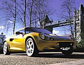 The single greatest contributory factor to the lightness of the Elise is its remarkable chassis. Of a spaceframe tub design, it's constructed of extruded anodised aluminium sections, bonded (glued) together rather than welded. Bonding not only allows far greater dimensional accuracy of the finished chassis, but also the Aluminium sections can be made thinner (therefore lighter) as the Aluminium is not subjected to the strength sapping welding process. The Elise's bare chassis tips the scales at a mere 68kg (150lb), yet has a torsional stiffness of 10133Nm per degree. That figure rises to 11000Nm per degree when the roll hoop and body are fitted to the chassis, a figure comparable to that of a unitary steel-bodied car and quite extraordinary for a roadster. Once Lotus started to make the Elise light, then reducing weight became a self-perpetuating process. With less mass to propel, it's possible fit a smaller, lighter engine and still achieve impressive performance figures. The Elise 111S has an engine of just 1.8 litres, yet can accelerate as quickly as sports cars costing three times as much. Small engines come with small, light gearboxes. And a small engine is also an economical engine, which meant Lotus engineers could reduce the size, and therefore the weight, of the fuel tank while maintaining a respectable touring range. Less weight to move along also means less weight which requires stopping. Which is why the Elise is able to do without a brake servo on the cross-drilled ventilated discs - thatŸs more weight saved. Similarly, such a light car does not require power assistance for it's steering, shaving off still more kilograms Handling considerations also strip more weight from the car. Having a low unsprung mass is the goal of all chassis engineers, the Elise benefits from extruded aluminium suspension uprights, monotube dampers (lighter than the twin-tube variety), and at the front, aluminium brake callipers. A standard Elise weighs in at a mere 699kg (dry) and the Elise 111S at 714kg (dry). That the Elise is widely acknowledged as the best sports car in the world today, categorically proves the value of saving weight. The