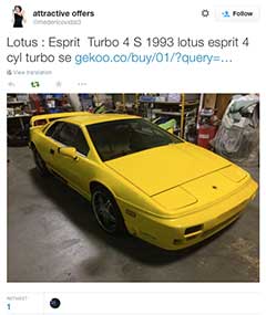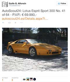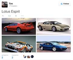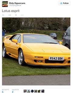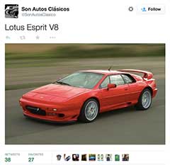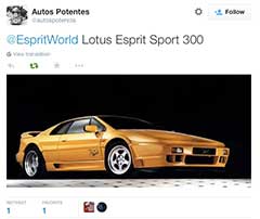 For a car that's not been in production for over 10 years, it still has a present on tweeter, which didn't exist in the public relm back when you could buy a new model from Lotus. Here's some that we've retweeted if you follow us @EspritWorld.