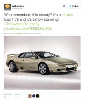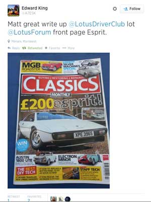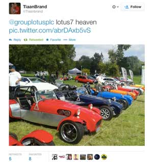 For a car that's not been in production of 10 years, it still have a present on tweeter, which didn't exist in the public relm back when you could buy a new model from Lotus. Here's latest we've seen.