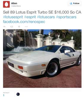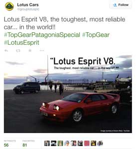 For a car that's not been in production of 10 years, it still have a present on tweeter, which didn't exist in the public relm back when you could buy a new model from Lotus. Here's latest we've seen.