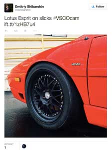 Calypso Red 1990 Esprit N/A lined up on the prestigious Goodwood race track starting grid. Looking great for a 25 year old car in the company of a Mercedes SLR 722, Aston Martin Vantage & McLaren 12C!––––––––––––––