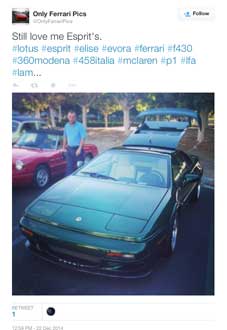 Lotus Esprit World was set up and went live on 14th February 2001. 14 years-old today and turns into a teenager! not bad for a small production car site! The site will continue to cover the Esprit into it's 10th year out of production (almost to the day) and continue to give all those Esprit addicts a little of what they need.––––––––––––––
