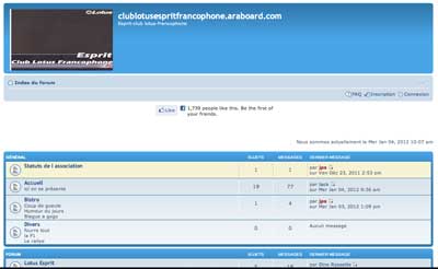 We are happy to annonce the birth of a new french Club called Esprit Club Lotus Francophone. A website is being set up, but currently only has a home page. http://www.lotusesprit.net. The French lanuage forum is up and running for those wishing to chat Esprits. You can sign up at the forum here. http://clublotusespritfrancophone.araboard.com.––––––––––––––