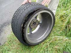 Doors' GT3 with Sport 350 wheels had a bit of a blow out on Sunday 12th. Don't have too much details at present, but Doors is ok and the rest of the car is undamaged. Not sure if the tyre is repairable for not!–––––––––––––––
