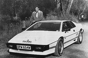Now where to begin! Are yes, the Silver Car. This was shown at the Turin Motor Show in 1972 and was the concept for the Esprit. The picture below show Lotus founder Colin Chapman with the car. The Cars body was design by Giorgetto Giugiaro and has a mid-engine (engine in the middle, just behind the driver) rear wheel drive layout. This was to last the life of the Esprit.