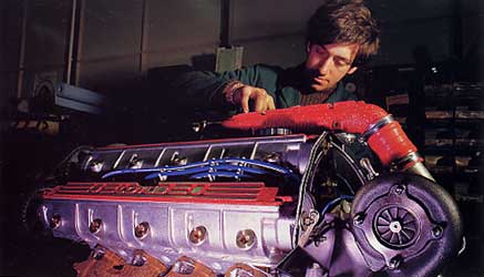 The next Esprit was the turbo in late 1980. This was a very different car underneath, including a new stiffer chassis, and looked slightly different due to a body kit. The first version of the Turbo was the Essex (One of Lotus' F1 sponsors). Carrying a 2.2 litre turbocharged engine and making 210 bhp. It was one of the quickest cars on the road, capable of over 150mph, leaving Ferrari and Porsche in it's shadow. The Turbo Esprit (it's proper title), was to run until 1987 with only minor changes made. In 1981 after the success of the Turbo Esprit, Lotus launched the Esprit S3, which used the new turbo chassis, but carried an un-turbocharged engine and lost the body kit. This is called an NA for normally aspirated, basically meaning no turbo. The S3 also ran until 1987.