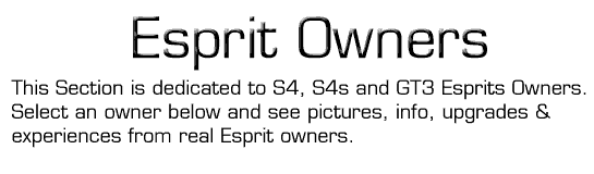 Owners pages now have ratings of interest. being the most. The more pictures and information your page has the better the rating. So move up the league table and send in some more pictures and details of life with an Esprit!